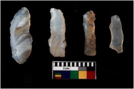 | Description / विवरण | There are n 4 Flake tool; There are multidirectional irregular scar pattern on them. few have blunt edges, Some of them are tapering at one end |