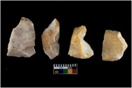| Description / विवरण | There are 4 flake cores. All of them are fully fluted flake cores without any trace of crested ridge flakes. They are tapering at one end and some have blunted edges. |