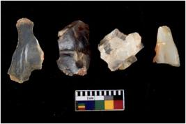 | Description / विवरण | There are n 4 cores; there are multidirectional irregular scar pattern on them. Some of them are tapering at one end. 3 quartz and 1 chert |