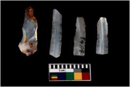 | Description / विवरण | There are n 4 Flake tool; There are multidirectional irregular scar pattern on them. few have blunt edges, Some of them are tapering at one end |