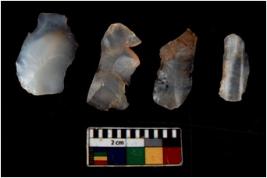 | Description / विवरण | There are n 4 Flake tool; There are multidirectional irregular scar pattern on them. few have blunt edges, Some of them are tapering at one end |