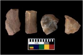 | Description / विवरण | There are n 4 utilized flake cores. There are multi directional irregular scar pattern on them. One has sharp edge and three have blunted edges. |