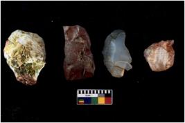 | Description / विवरण | There are n 4 cores; there are multidirectional irregular scar pattern on them. Some of them are tapering at one end. Most of them having blunt edges. 1 chalcedony, 2 chert and 1 lime stone |