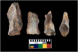 | Description / विवरण | There are n 4 utilized flake cores. Out of them one is made up of Chert and three are made up of Chalcedony. There are multi directional irregular scar pattern on them. Two are tapering at one end and two have blunted edges. |