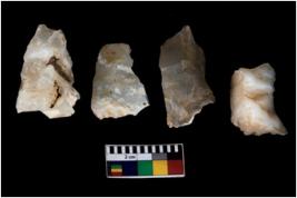 | Description / विवरण | There are n 4 ; worked utilized flakes; there are multidirectional irregular scar pattern on both dorsal and ventral face of the flakes. All are having sharp edges. |