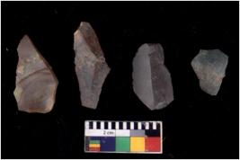 | Description / विवरण | There are n 4 of utilized worked cores and show multidirectional irregular scar pattern on both dorsal and ventral sides. |