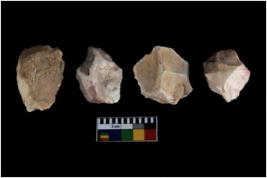 | Description / विवरण | There are 4 flake cores. All of them are fully fluted flake cores without any trace of crested ridge flakes. Some of them have flat base and some have sharp edges. |