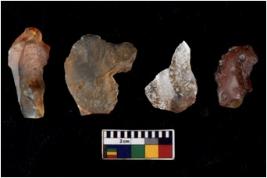 | Description / विवरण | There are n 4 flakes tool; there are flakes with sides trimmed, Marks of secondary flaking are present on the both the faces. |