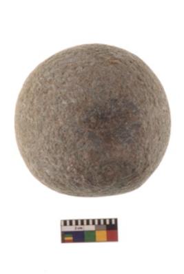 | Description / विवरण | Specimen of a spherical shaped hammer stone with battered surface |