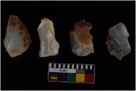 | Description / विवरण | There are n-4 of intact utilized flakes made up of Chalcedony. Some of them have bulge of percussion and some are flat flakes. |
