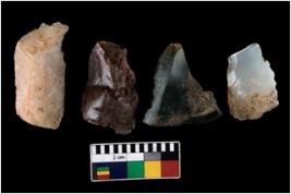 | Description / विवरण | There are n 4 ; worked utilized flakes; there are multidirectional irregular scar pattern on both dorsal and ventral face of the flakes. All are having sharp edges. Three of them are tapering at one end. |