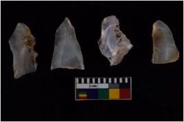 | Description / विवरण | There are n-4 of intact utilized flakes made up of Chalcedony. Some of them have bulge of percussion and some are flat flakes. |