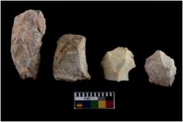 | Description / विवरण | There are 4 flake cores. All of them are fully fluted flake cores without any trace of crested ridge flakes. Some have flat base while few have round edges. |