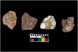 | Description / विवरण | There are n 4 utilized flake cores. Out of them two are made up of Chert and two are made up of Chalcedony. There are multi directional irregular scar pattern on them. Two are tapering at one end and two have blunted edges. |