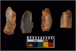 | Description / विवरण | There are n 4 Flake tool; There are multidirectional irregular scar pattern on them. few have blunt edges, Some of them are tapering at one end. |