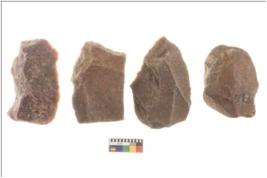 | Description / विवरण | There are n 4 flakes tool; there are multidirectional irregular scar pattern on them; made of large flakes and all four have tapering edges. |