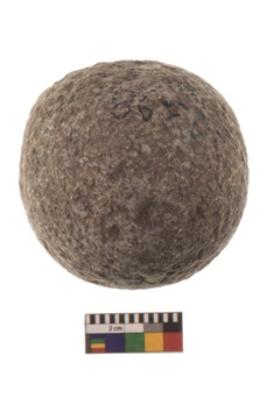 | Description / विवरण | Specimen of a spherical shaped hammer stone with battered surface |