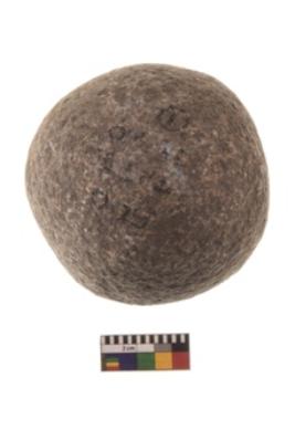 | Description / विवरण | Specimen of a spherical shaped hammer stone with battered surface |