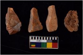 | Description / विवरण | There are n 4 flakes tool; there are flakes with sides trimmed, Marks of secondary flaking are present on the both the faces. |