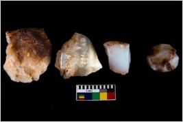| Description / विवरण | There are n 20 object; among them 19 are made up of chert and 1 is quartz, among them one is looked like core, 6 are having trapezoid shape along with sharp from sides. |