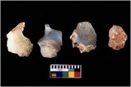 | Description / विवरण | There are n 4 cores; there are multidirectional irregular scar pattern on them. The reverse bulb and platform can be seen. 3 quartz and 1 chalcedony |