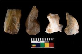 | Description / विवरण | There are n 4 ; worked utilized flakes; there are multidirectional irregular scar pattern on both dorsal and ventral face of the flakes. Two of them are tapering at one end. All are having sharp edges. |