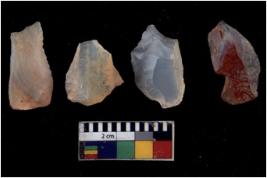 | Description / विवरण | There are n 4 of utilized worked cores and have irregular dominant scar pattern. Three are tapering at one end. |
