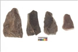 | Description / विवरण | There are n 4 flakes tool; there are large flakes with sides trimmed, Marks of secondary flaking are present on the both the faces.The dorsal is relatively flat. |