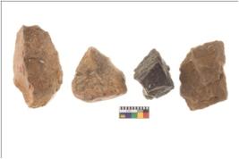 | Description / विवरण | There are n 4 flakes tool; there are large flakes with sides trimmed, Marks of secondary flaking are present on the both the faces.The dorsal is relatively flat. |
