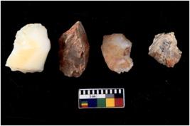 | Description / विवरण | There are n 4 cores; there are multidirectional irregular scar pattern on them. The reverse bulb and platform can be seen. 3 quartz and 1 chert |