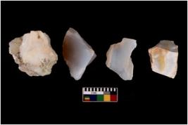 | Description / विवरण | Specimen of a cores with several broad fluted marks. The reverse bulb and platform can be seen. The flake scars are seen on all sides. |