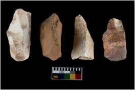 | Description / विवरण | There are 4 flake cores. All of them are fully fluted flake cores without any trace of crested ridge flakes. Some of them have flat base and some have sharp edges. |