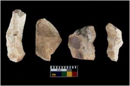 | Description / विवरण | There are 4 flake cores. All of them are fully fluted flake cores without any trace of crested ridge flakes. They are tapering at one end and some have blunted edges. |