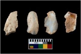 | Description / विवरण | There are n 4 utilized flake cores. There are multi directional irregular scar pattern on them. Three are tapering at one end and one has sharp edge. |