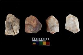 | Description / विवरण | There are 4 flake cores. All of them are fully fluted flake cores without any trace of crested ridge flakes. They are tapering at one end and some have blunted edges. |