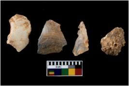 | Description / विवरण | There are n 4 utilized flake cores. There are multi directional irregular scar pattern on them. One has sharp edge and three have blunted edges. |