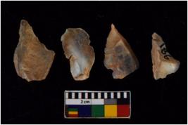 | Description / विवरण | There are n 4 flakes tool; there are flakes with sides trimmed, Marks of secondary flaking are present on the both the faces. The dorsal is relatively flat. |