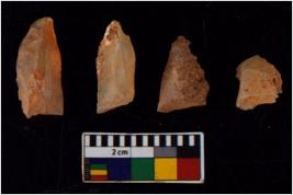 | Description / विवरण | There are n 4 flakes tool; there are flakes with sides trimmed, Marks of secondary flaking are present on the both the faces. |