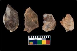 | Description / विवरण | There are n 4 utilized flake cores. There are multi directional irregular scar pattern on them. Two have sharp edge and two have blunted edges. |
