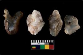 | Description / विवरण | There are n 4 ; worked utilized flakes; there are multidirectional irregular scar pattern on both dorsal and ventral face of the flakes. One is having flat base. All are having sharp edges. |