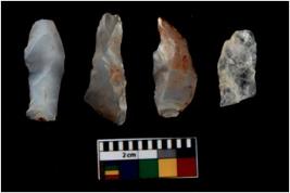 | Description / विवरण | There are n 4 flakes tool; there are flakes with sides trimmed.The dorsal is relatively flat. One is pointed functional top. |
