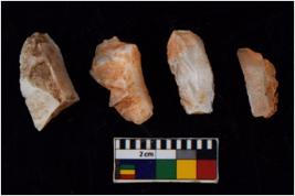 | Description / विवरण | There are n 4 flakes tool; there are flakes with sides trimmed, Marks of secondary flaking are present on the both the faces. The dorsal is relatively flat. |