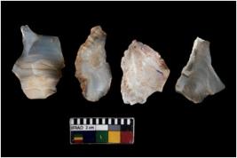 | Description / विवरण | There are n 4 ; worked utilized flakes; there are multidirectional irregular scar pattern on both dorsal and ventral face of the flakes. Two of them are tapering at one end.All are having sharp edges. |