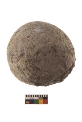 | Description / विवरण | Specimen of a spherical shaped hammer stone with battered surface |