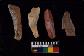 | Description / विवरण | There are n 4 flakes tool; there are flakes with sides trimmed, Marks of secondary flaking are present on the both the faces. |