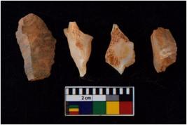 | Description / विवरण | There are n 4 flakes tool; there are flakes with sides trimmed, Marks of secondary flaking are present on the both the faces. The dorsal is relatively flat. |