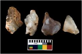 | Description / विवरण | There are n 4 ; worked utilized flakes; there are multidirectional irregular scar pattern on both dorsal and ventral face of the flakes. Three of them are tapering at one end.All are having sharp edges. |