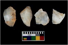 | Description / विवरण | There are n 4 utilized flake cores. There are multi directional irregular scar pattern on them. One has sharp edge and three have blunted edges. |