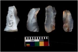 | Description / विवरण | There are n 4 flakes tool; there are flakes with sides trimmed, Marks of secondary flaking are present on the both the faces.The dorsal is relatively flat. |