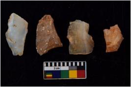 | Description / विवरण | There are n 4 flakes tool; there are flakes with sides trimmed, Marks of secondary flaking are present on the both the faces. |